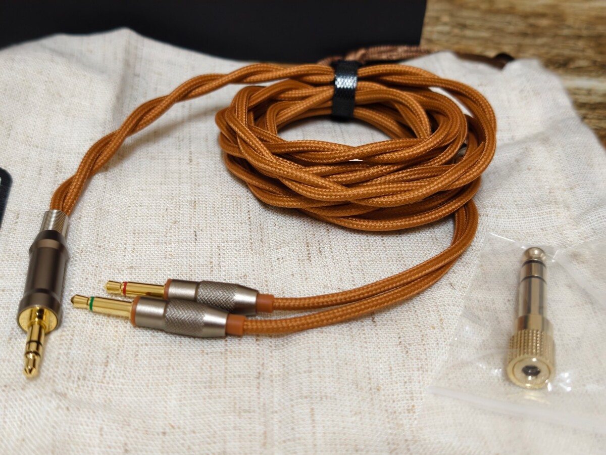 The cable included is a matching colour theme, 2 core oxygen free copper with a soft cotton sleeve at 1.6 meters long with only 3.5mm balanced termination available. The headphones side are the standard 3.5mm dual entry that is similar with many headphones in the market, so 3rd party cables are easily sourced.